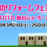 続きを読む『春のリフォームフェア in TOTO仙台ショールーム』3/24(土)・3/25(日)開催!