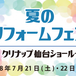 続きを読む『夏のリフォームフェア in クリナップ仙台ショールーム』7/21(土)・7/22(日)開催!